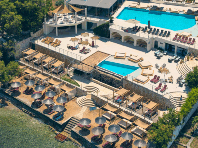 Acest hotel exclusiv pentru adulți este amplasat printre măslini, cu vedere la Marea Ionică, chiar pe plaja din satul Kypseli. Oaspeții se pot bucura de piscine cu zone de plajă, restaurante care servesc bucătărie locală și mediteraneană și baruri. Cazarea este oferită în suite moderne, în stil minimalist. Toate suitele sunt dotate cu aer condiționat și Wi-Fi, seif, dulap și zonă de relaxare. Unele suite au piscină privată. Hotelul este separat de un drum, iar unele camere sunt situate vizavi de clădirea principală.